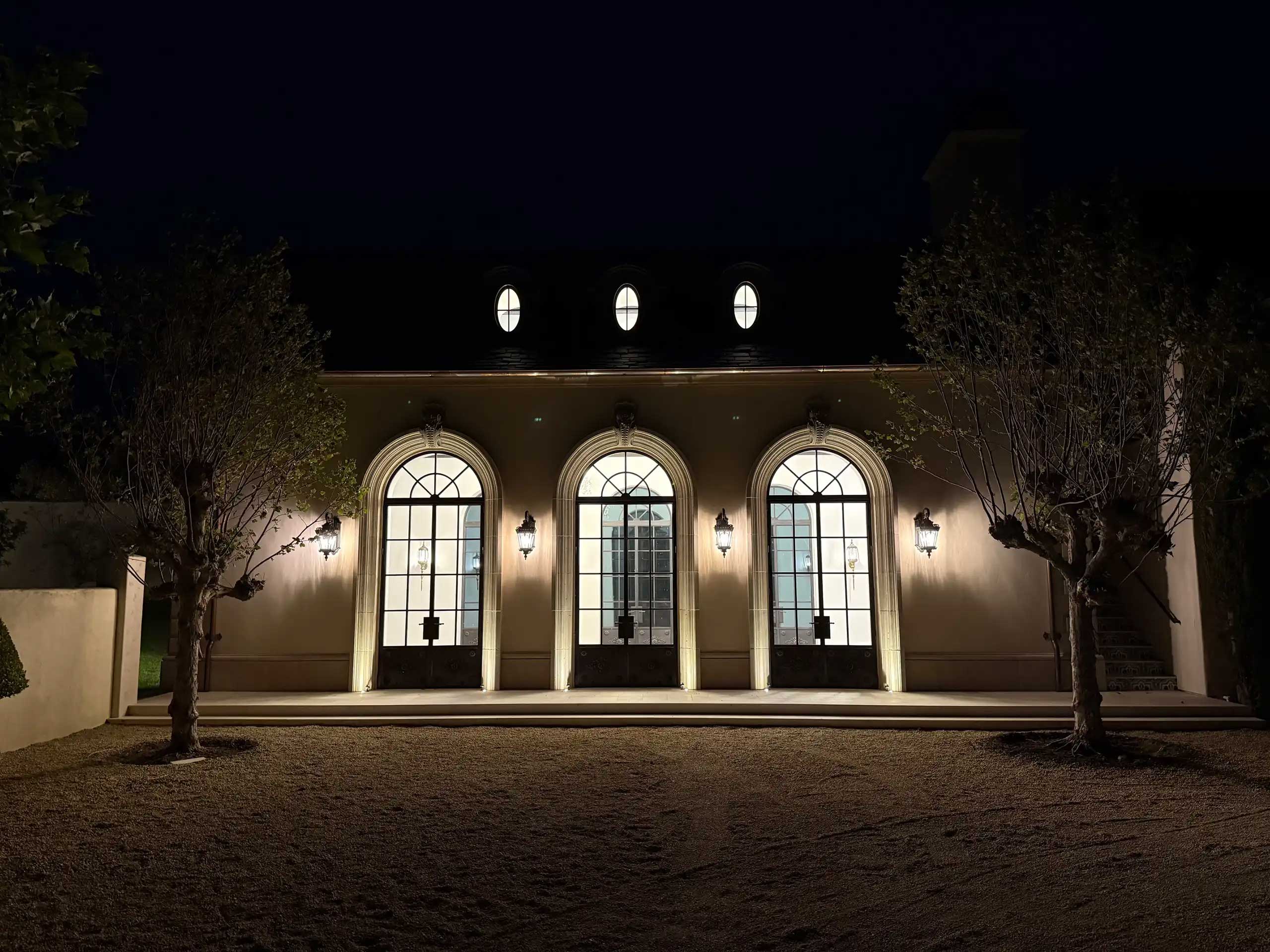 The addition of an event space within an existing residence. The design included power and lighting, with owner selected visible fixtures. Aurum included the addition of LED color changing lighting, exterior in-grade up lighting and all lighting controls by Steve Cate.